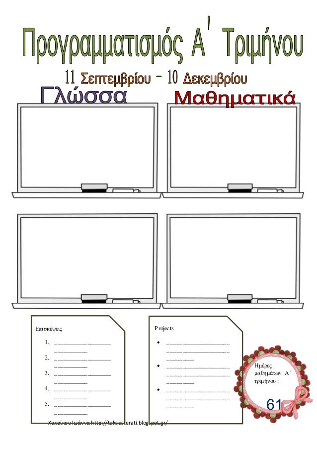 Χαζεύοντας όμως στα bloggs άρχισα να ζηλεύω την οργάνωση και την επιμέλεια μερικών συναδέλφων. Αποφάσισα έτσι κι εγώ να γίνω φέτος λίγο πιο τακτική... (αν θα το καταφέρω , θα ΜΟΥ πω πολλά μπράβο!!!!!!!!)